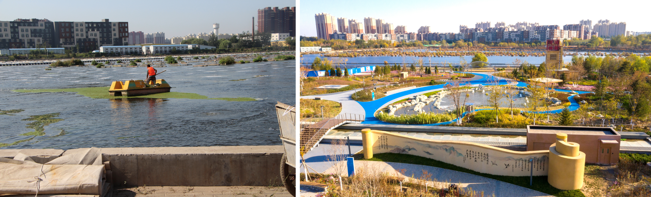 北京碧水再生水厂升级改造前(左)、升级改造后(右)
