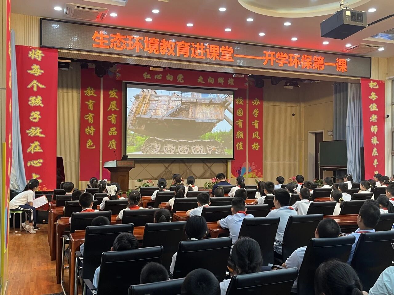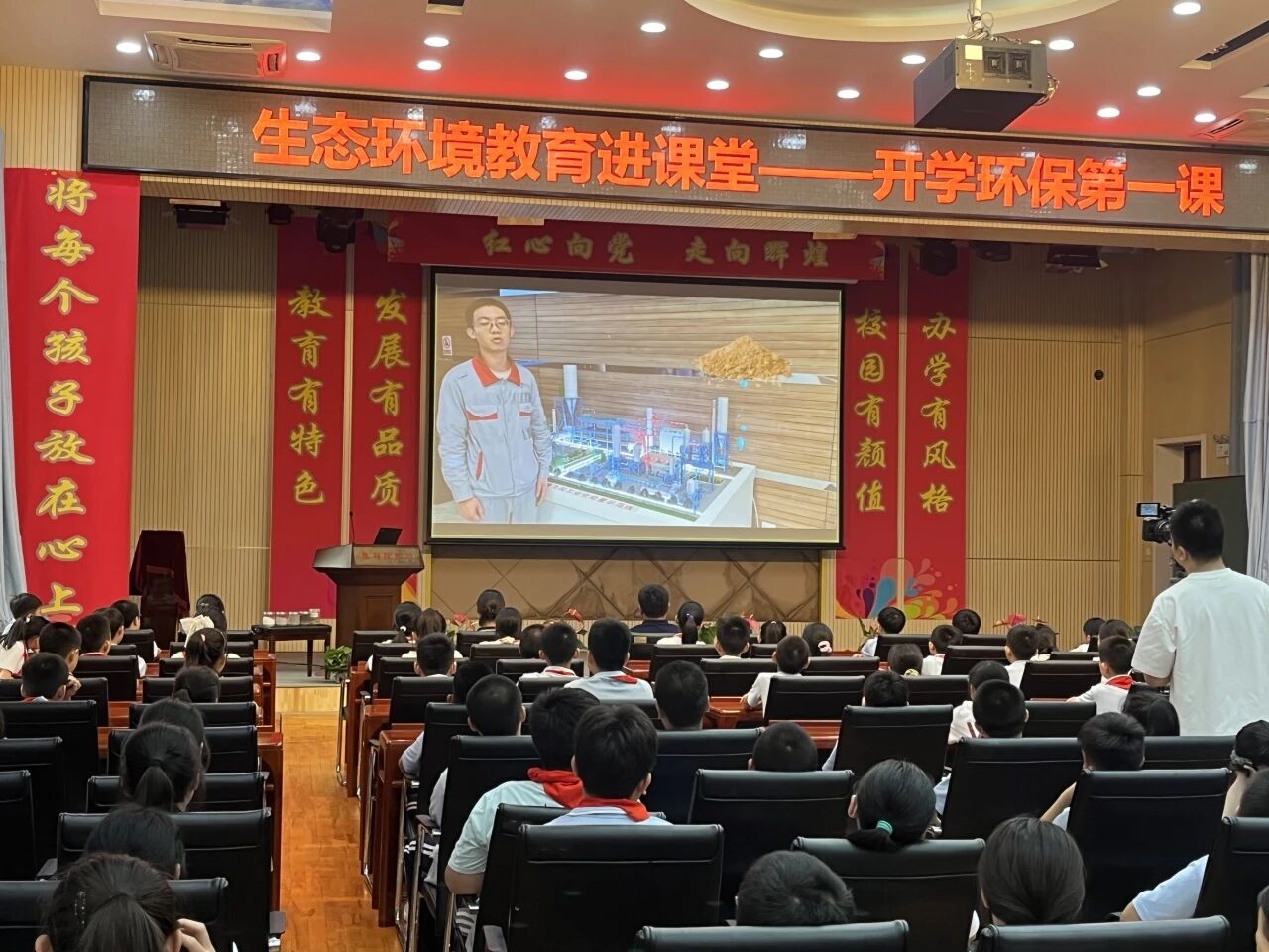 课程开始,工作人员用充满悬念的开场白点燃了同学们的好奇心,同学们带着疑问与期待观看视频课程,开启了一场环保科技探索之旅。