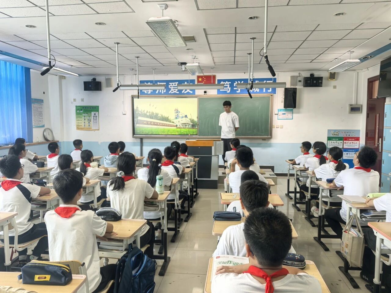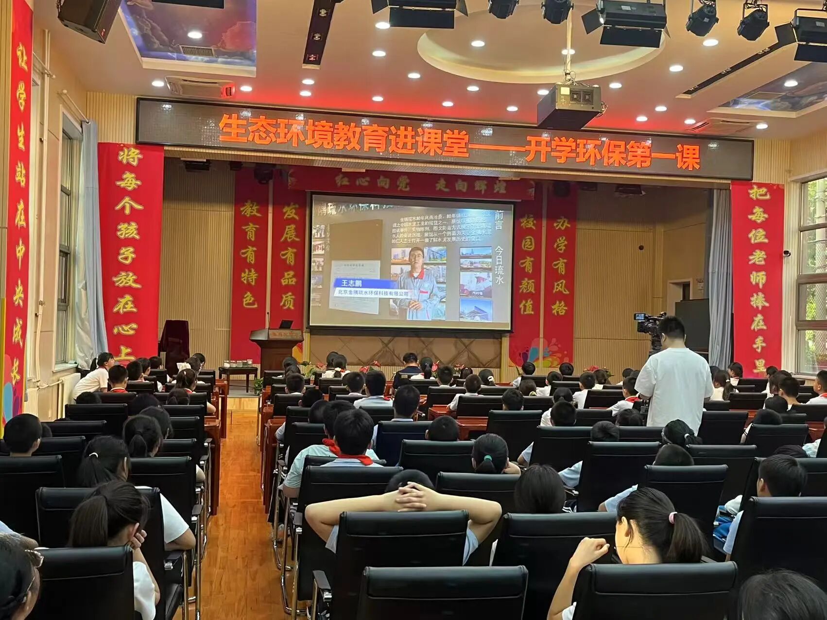 9月4日,正值秋季开学季,全国科普月北京生态环境系列科普宣传活动也拉开帷幕,北京市生态环境保护宣传中心连续多年打造的生态环境教育进课堂——开学环保第一课如约走进中小学生的课堂。此次课程邀请环保设施向公众开放单位——北京金隅琉水环保科技有限公司的专家老师走进北京教育科学研究院附属石景山实验学校,为同学们讲解水泥厂里的绿色环保高科技。活动当天,视频课程同步在线上发布,石景山区教委将组织全区中小学生在云课堂观看学习,全市多所中小学也将在近期组织学生集中观看。