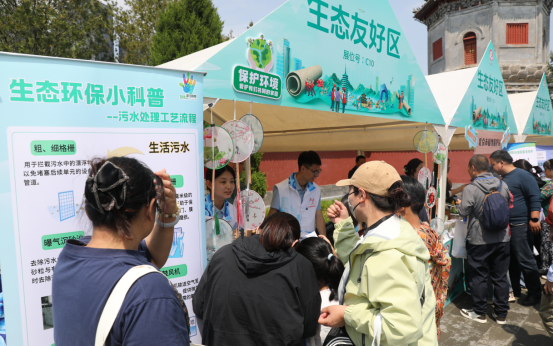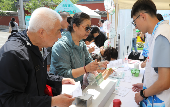 5月10日,第七届北京邻里节市级主会场活动在通州区西海子公园举办,活动主题为“相约邻里节·共筑友好城”。北京市生态环境局以“节约能源资源 共建美丽北京”为主题,联合环保设施开放单位北京碧水再生水厂共同开展科普宣传。